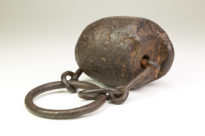 Sobre Instrumento de Castigo: “Colar de ferro, vira-mundo, calceta, libambo e chicote torturavam os escravos violentamente em todo o Brasil colonial. No antigo Arraial do Tijuco, trabalhando principalmente na extração de diamantes, os escravos sofriam os mais rigorosos castigos. Esta situação foi relatada pelos viajantes Spix e Martius (1938, p.114-15) da seguinte maneira:/ “Os feitores vigiam sem cessar, os movimentos dos escravos, enquanto lavam, para que eles não possam empregar ardis. Se culpado o extravio primeiro por meio de chicotadas e prisão com o colar de ferro ao pescoço; reincidindo na culpa, ele não é mais empregado no serviço”./ Os instrumentos de castigo, de ferro, eram forjados pelos próprios escravos, que não raro os usavam: o colar de ferro tem braço em forma de gancho, no intuito de ser agarrado mais facilmente; o vira-mundo era utilizado para prender os punhos e os tornozelos; a calceta, uma bola de ferro, era presa no tornozelo; o libambo era formado por uma grande corrente com gargalheiras, colocadas nos pescoços, para caminharem em grupo ou serem conduzidos de um local a outro. Também era usual, caso o escravo fosse acusado de ter furtado um diamante, prendê-lo e fazer com que engolisse pedras comuns, para só libertá-lo depois de evacuadas as pedras e sem que nenhum diamante fosse encontrado./ Os escravos ao longo dos anos foram sendo cada vez mais vigiados, controlados e castigados. As condenações estabelecidas variavam de três a dez anos de galés, conforme delito. Eram condenados aqueles que não possuíssem licença ou matrícula para ficarem nas terras diamantinas, que fossem pegos extraindo ou carregando diamantes ou , até mesmo, com instrumentos de mineração./ Todos os escravos que trabalhavam na extração de diamantes pertenciam a particulares que os alugavam à administração. Em alguns momentos o número chegou a três mil. A condição de trabalho era extremamente árdua. Realizavam todos os serviços e etapas da mineração: faziam a imensa obra de barragem dos rios; colocavam em funcionamento a roda d´água, secando a parte mais profunda do rio; realizavam o carregamento do cascalho do rio em gamelas sobre a cabeça para a lavagem, formando diversos montes de aproximadamente quinze toneladas cada um; e lavavam o cascalho para descobrir os diamantes./ A longa jornada de trabalho, desde o amanhecer até o anoitecer, era interrompida pela manhã, ao meio-dia, e à tarde para as refeições, que consistiam basicamente de angu, feijão e sal. Durante todo o dia paravam apenas duas horas à tarde e quatro ou cinco vezes para fumarem. Esta condição de trabalho provocava os mais diferentes tipos de doenças. Usando apenas calções e, no tempo mais frio, coletes, os escravos passavam longo período com o corpo curvado e com água pelos joelhos, ficando os mais jovens aleijados.” (1)