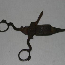 Sobre Espevitadeira: “Espécie de tesoura para cortar o pavio das velas e atiçar-lhes a chama; em geral formava conjunto com pequena bandeja alongada que lhe servia de apoio. Este utensílio, feito em prata, de estanho, de latão, teve função importante e amplo uso em casas ricas e modestas até o aparecimento da iluminação a gás no séc. XIX, e podia ser muito elaborado.” (1)