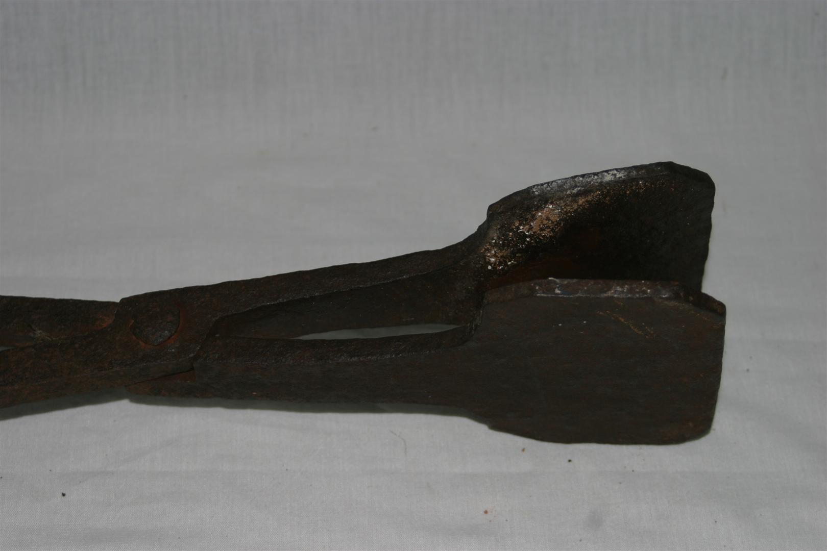 Instrumento de tortura de beiço confeccionado em metal (ferro), de estrutura longilínea, contendo cabo duplo com terminações denteada e em aro, unidos por argola ovalada. Na extremidade que une os cabos através de parafuso, funcionando em sistema de “tesoura”, se estendem duas chapas do mesmo metal, de estrutura retangular com extremidades abauladas, que servia possivelmente para espremer os lábios dos escravos.