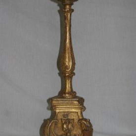 Sobre Tocheiro: “Grande castiçal para vela ou tocha de cera usado outrora para iluminar recintos amplos; tanto pode ser usado no chão como sobre os móveis. Tem, em geral, um pino onde se espeta a vela. Os tocheiros de mesa, medindo cerca de 60 cm, são normalmente para uma luz, e deles se conhecem, entre nós, belos exemplares de altar, sobretudo do período Barroco, feitos de madeira entalhada dourada ou natural, ou de metal.” (1)